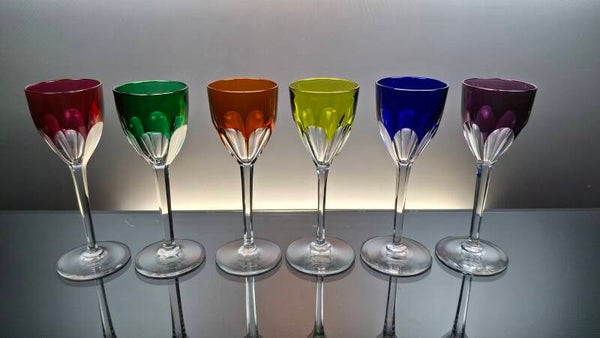 6 colored French crystal wine roemer glasses “Baccarat - Genova”