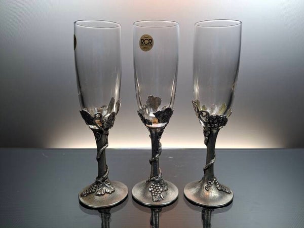 3 Italian crystal Champagne glasses “RCR», with pewter base.