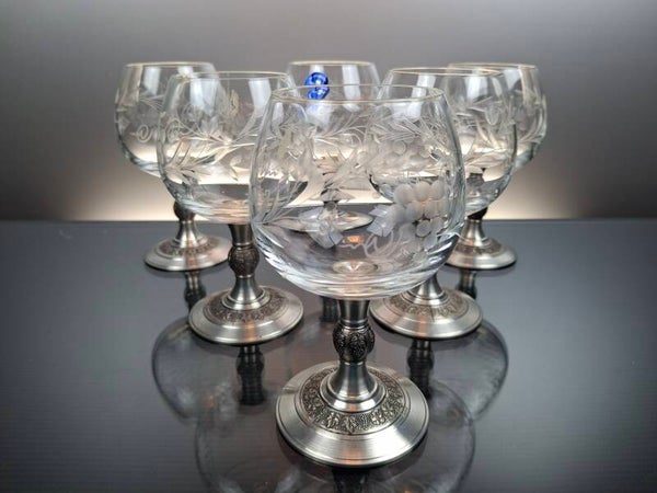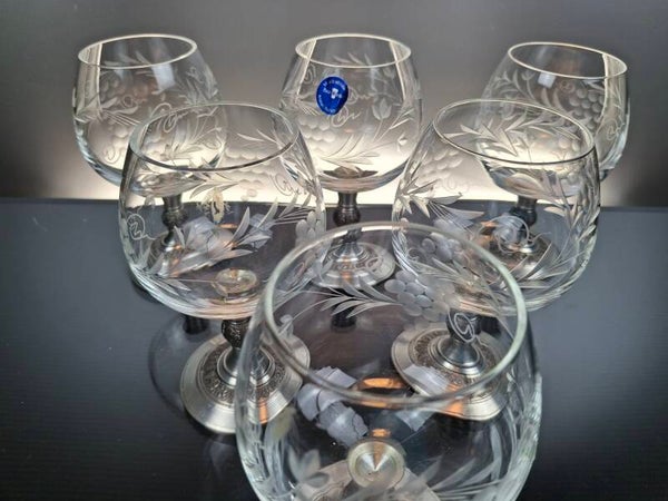 6 German crystal Cognac glasses “Zum-Becker», with pewter base.