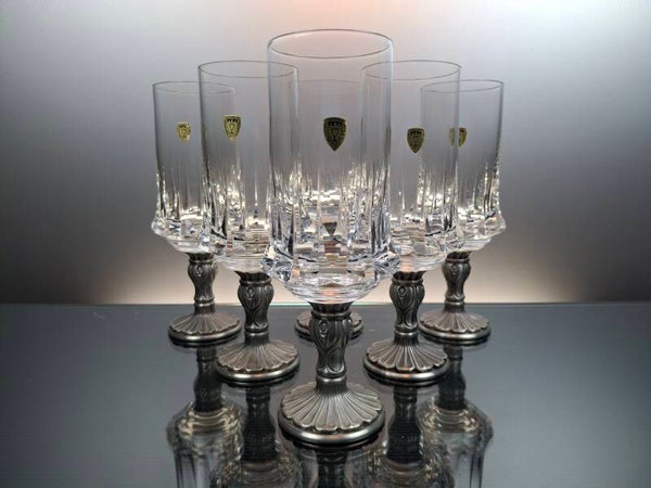6 German crystal water glasses “Pochinger», with pewter base.