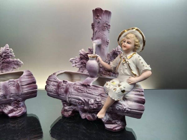 The set is made of cast ceramic, using pastel colors, mainly purple.