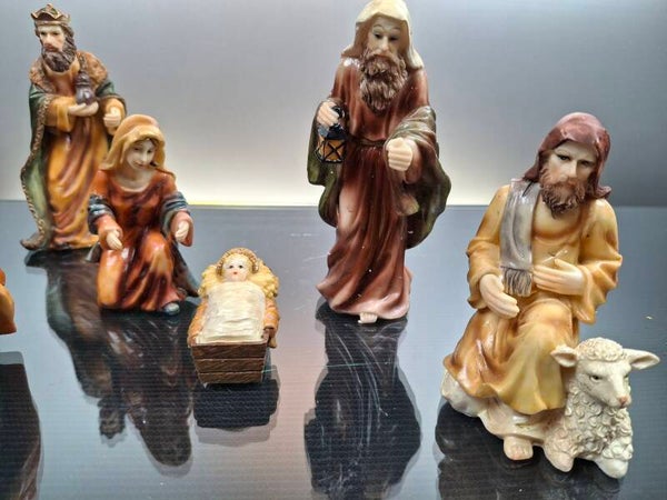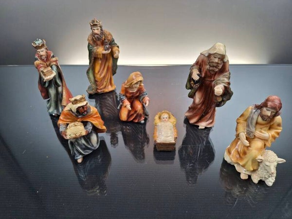7 vintage Nativity figures in original box