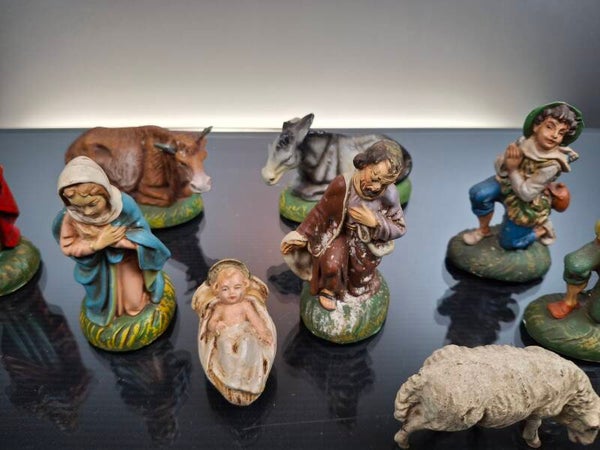 Antique Wooden nativity scene with 13 figures