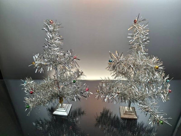 2 Vintage silver Christmas trees with glass pearls 35 cm / 13.78 inches