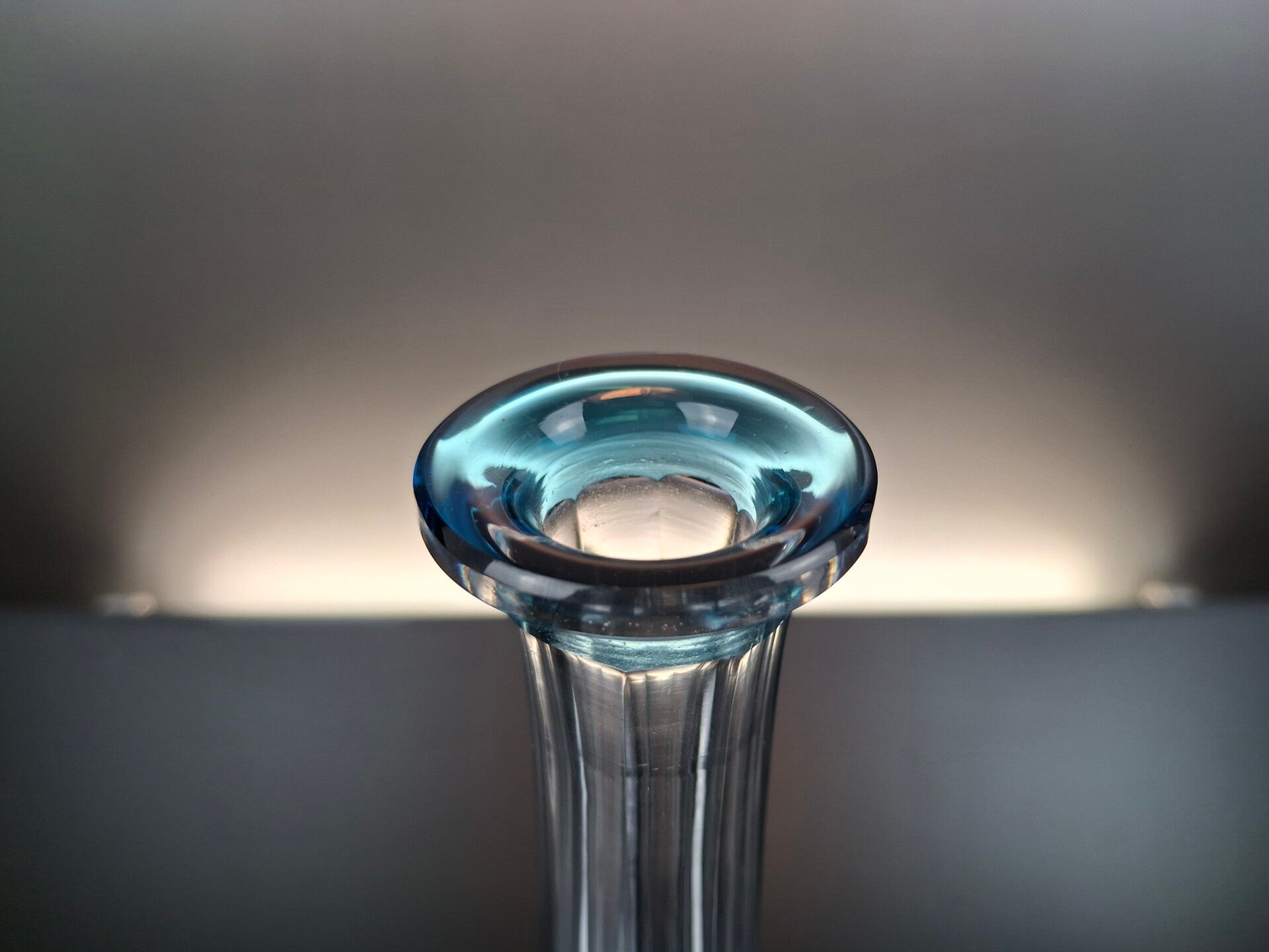 The decanter is made in the rare blue crystal.