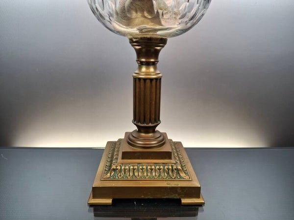 This beautiful lamp is made of a combination of bronze and crystal/glass.