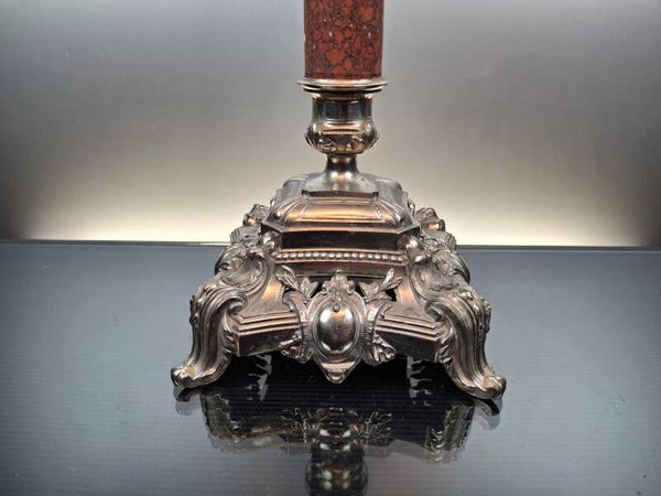 The base is beautifully decorated with baroque elements, such as floral tendrils. This foot still has a nice silvering.