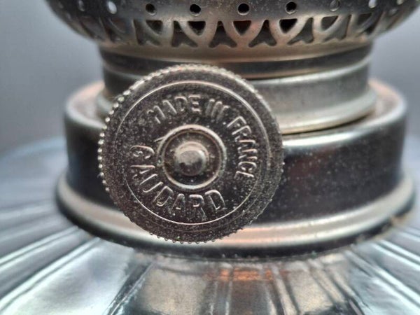 This lamp was made in a Belgium pewter factory, on request of Gaudard. And made for the French market.