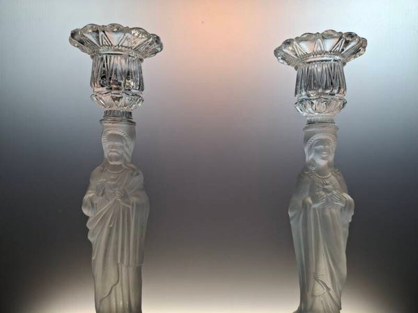 Scailmont antique glass candlesticks “Sacre Coeur”