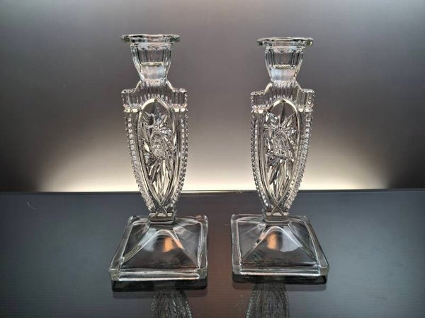 In the trunk of the candlesticks is a star/flower that is often used in Bohemian crystalware.