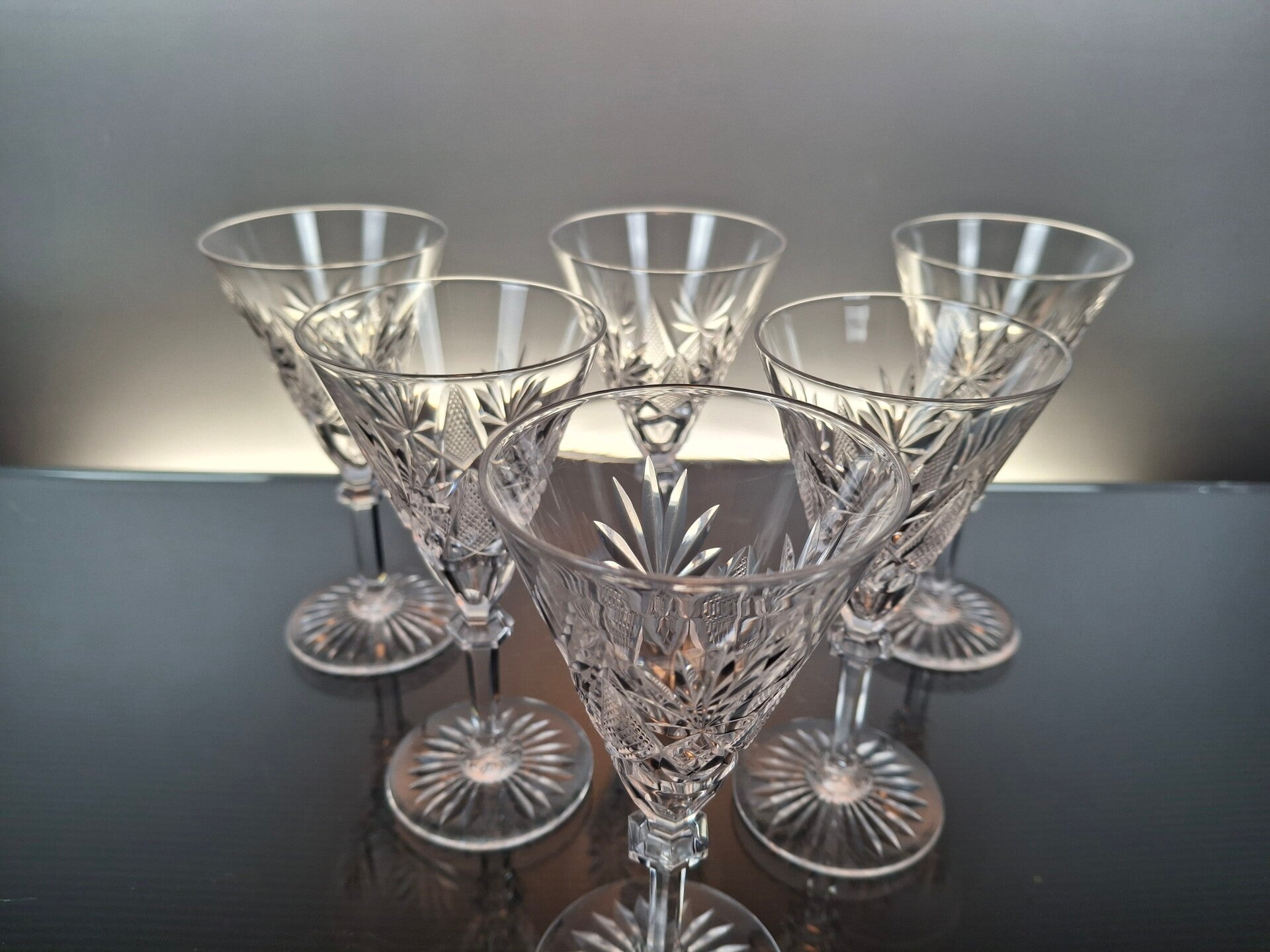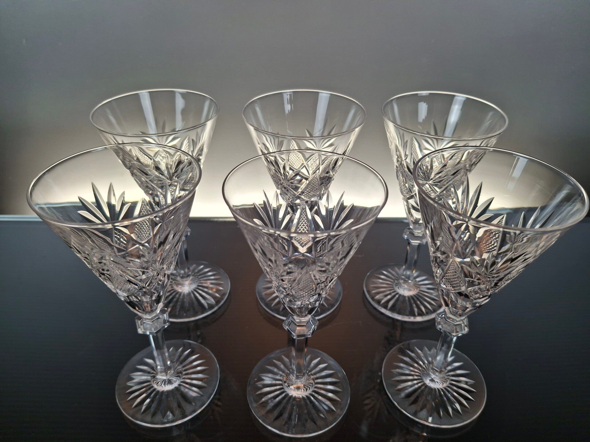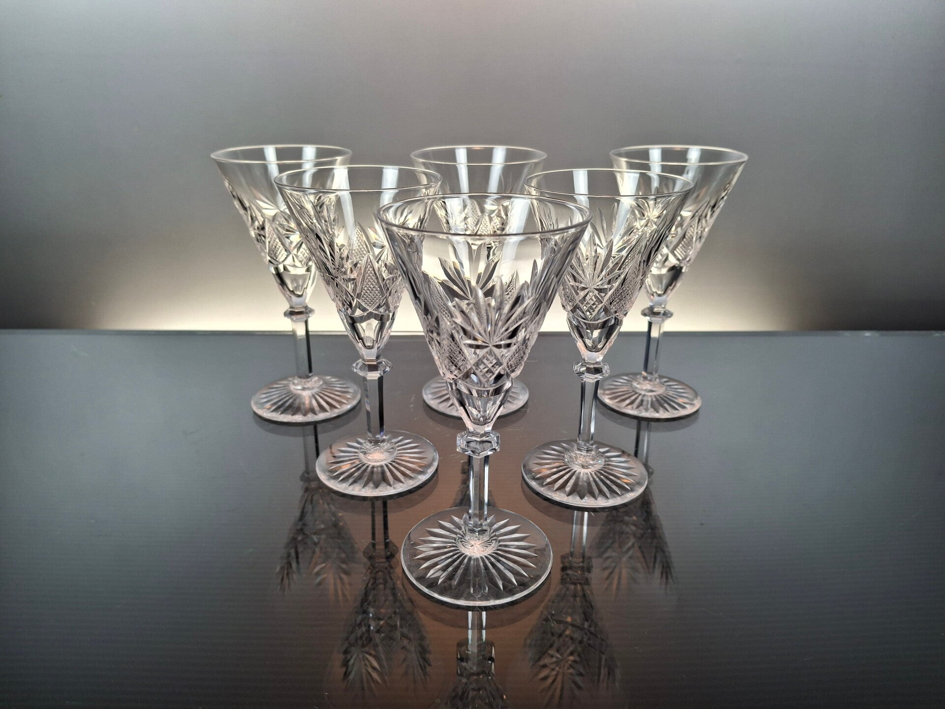 6 rare port glasses, made in the first part of the 20th century in Belgium, by the famous crystal house “Val Saint Lambert”