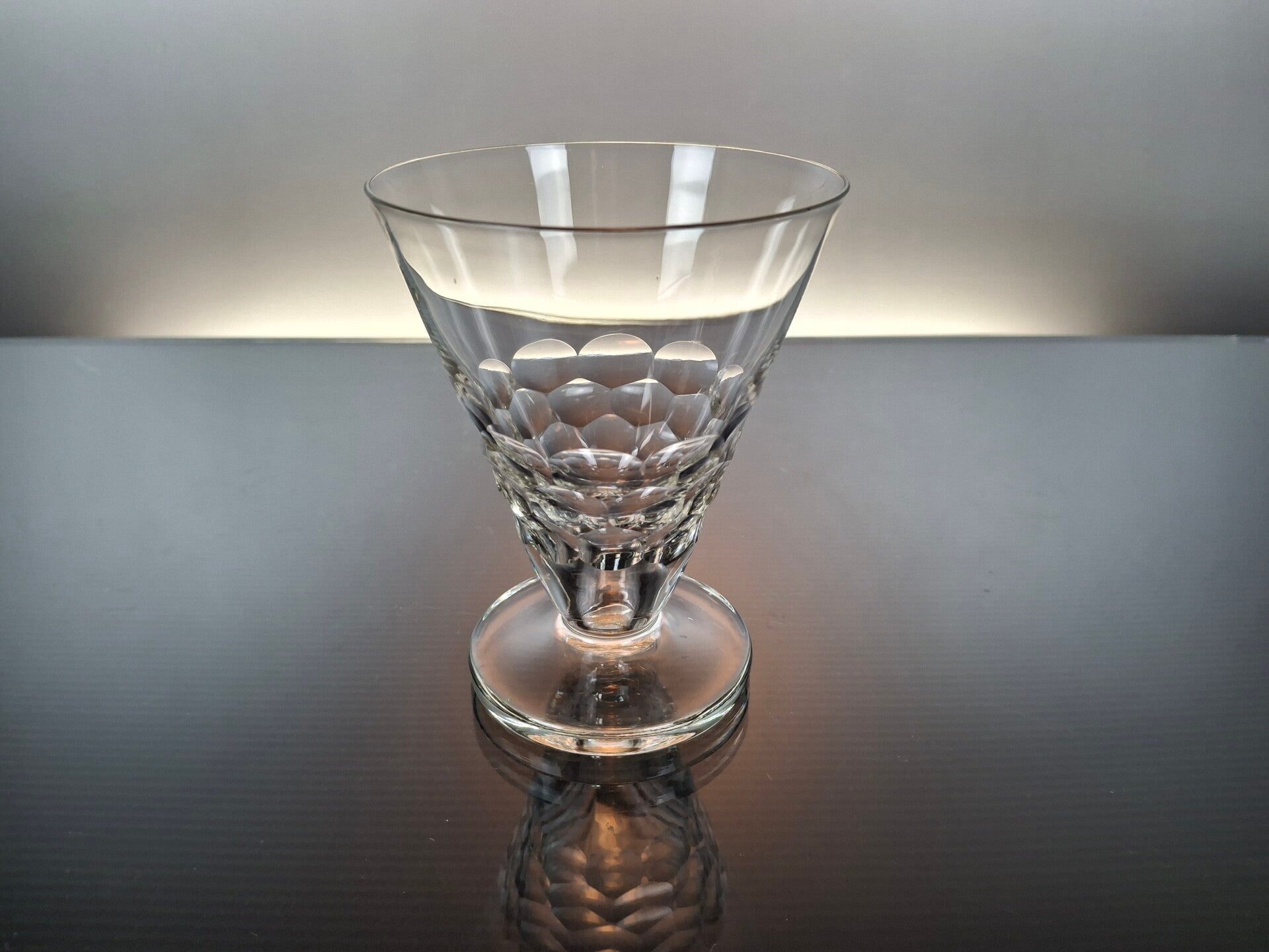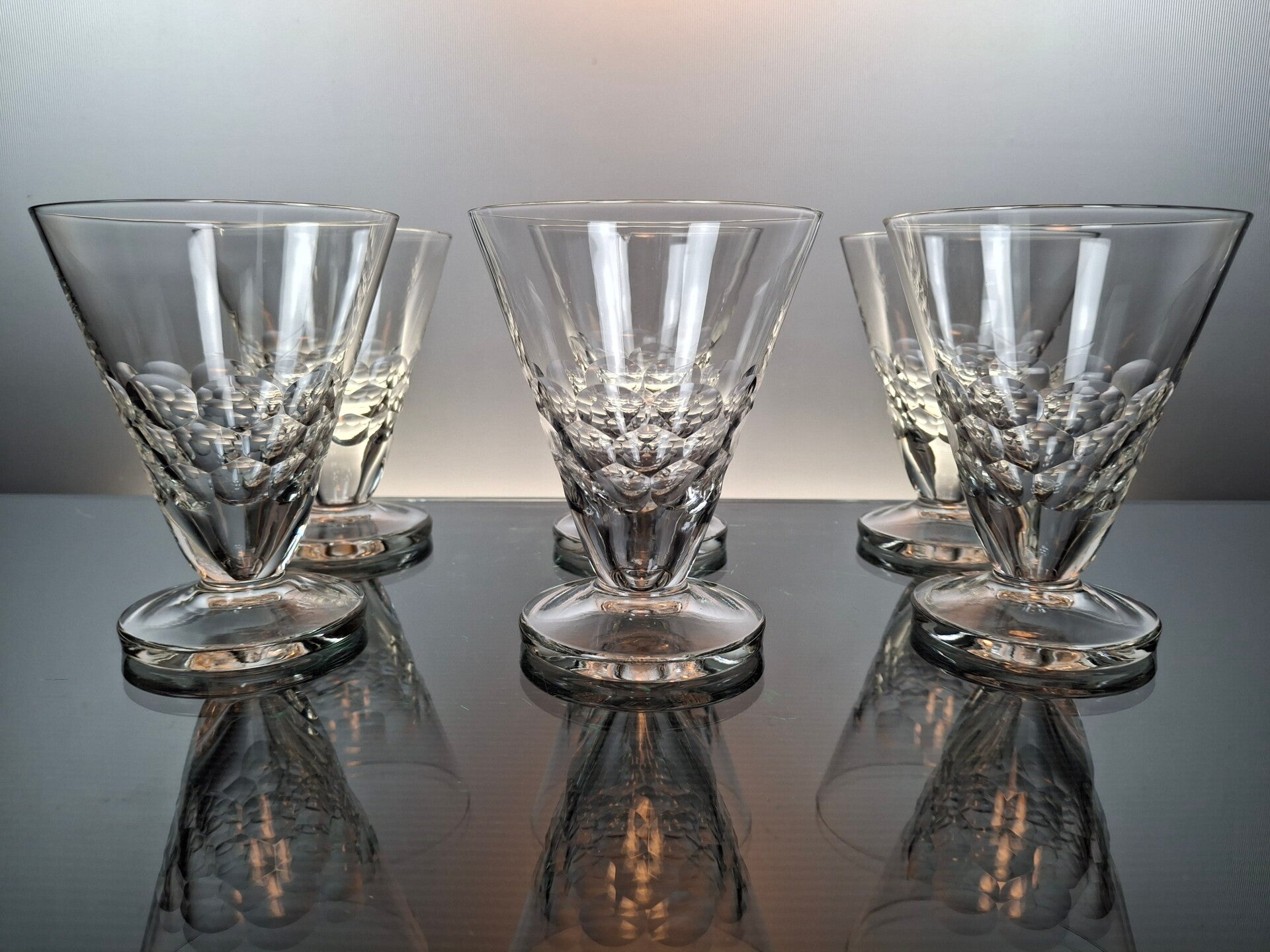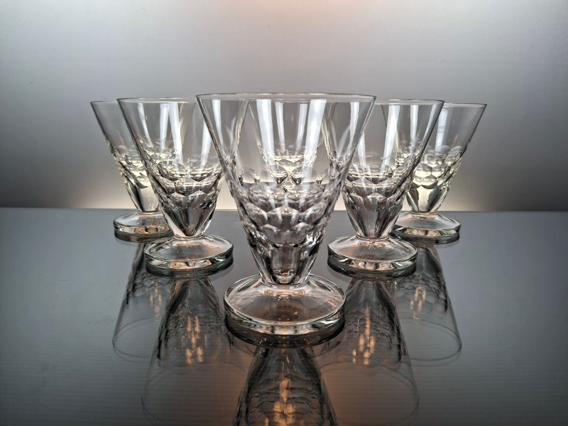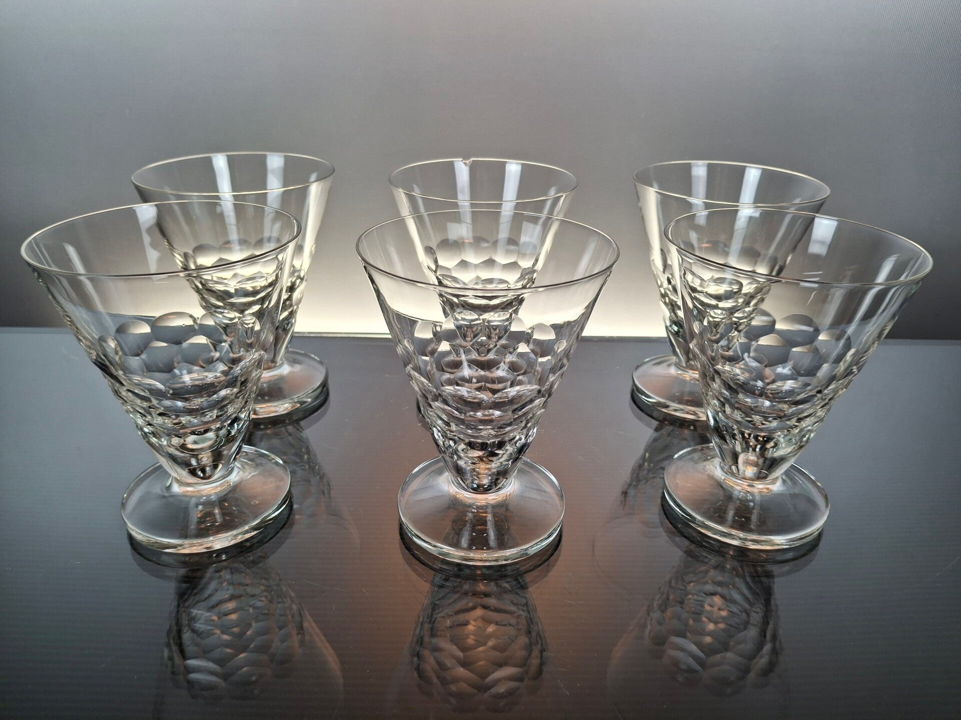 The glasses have a beautiful cone shape and are decorated with honeycomb motif, also called "Ecailles".