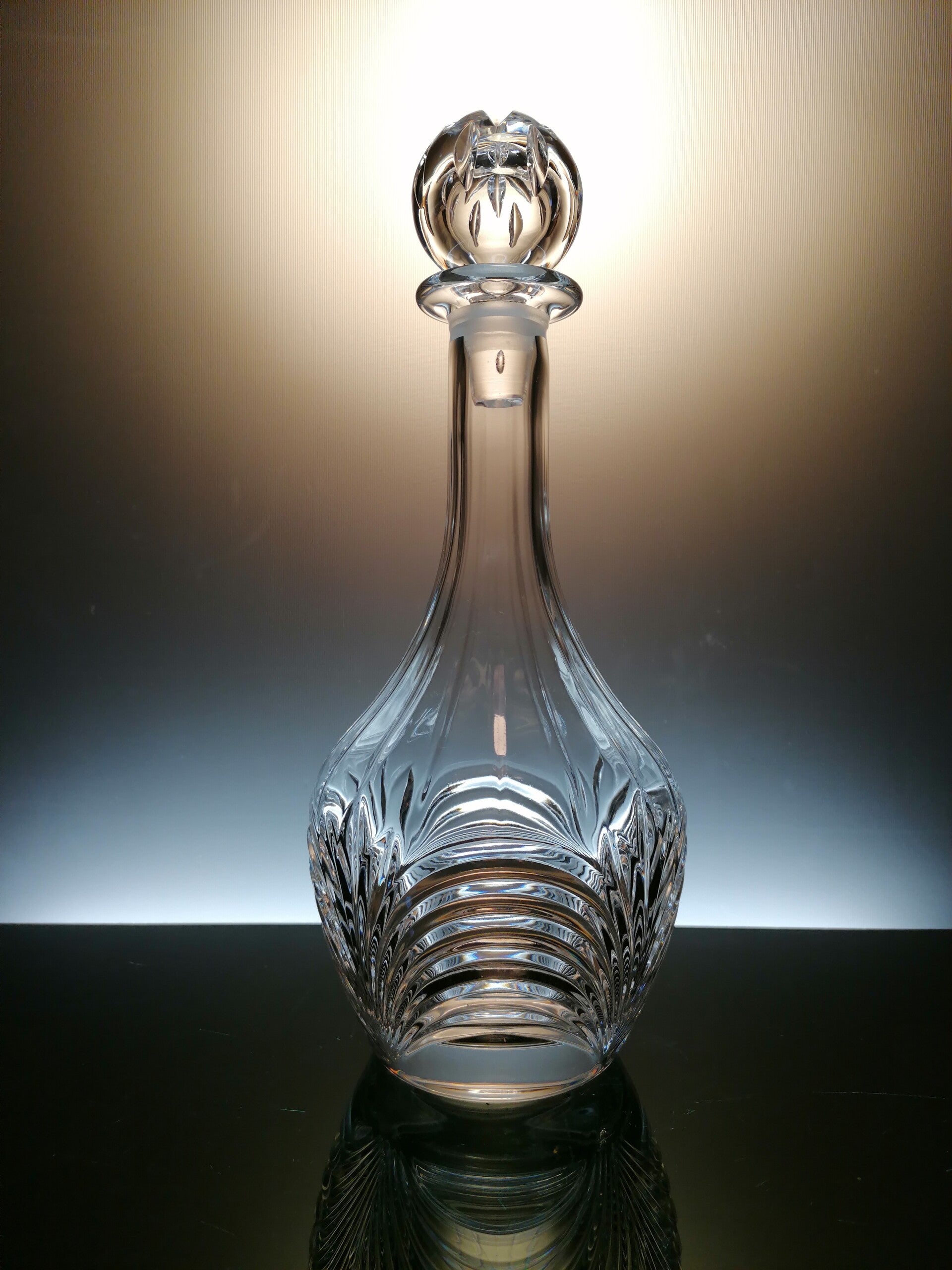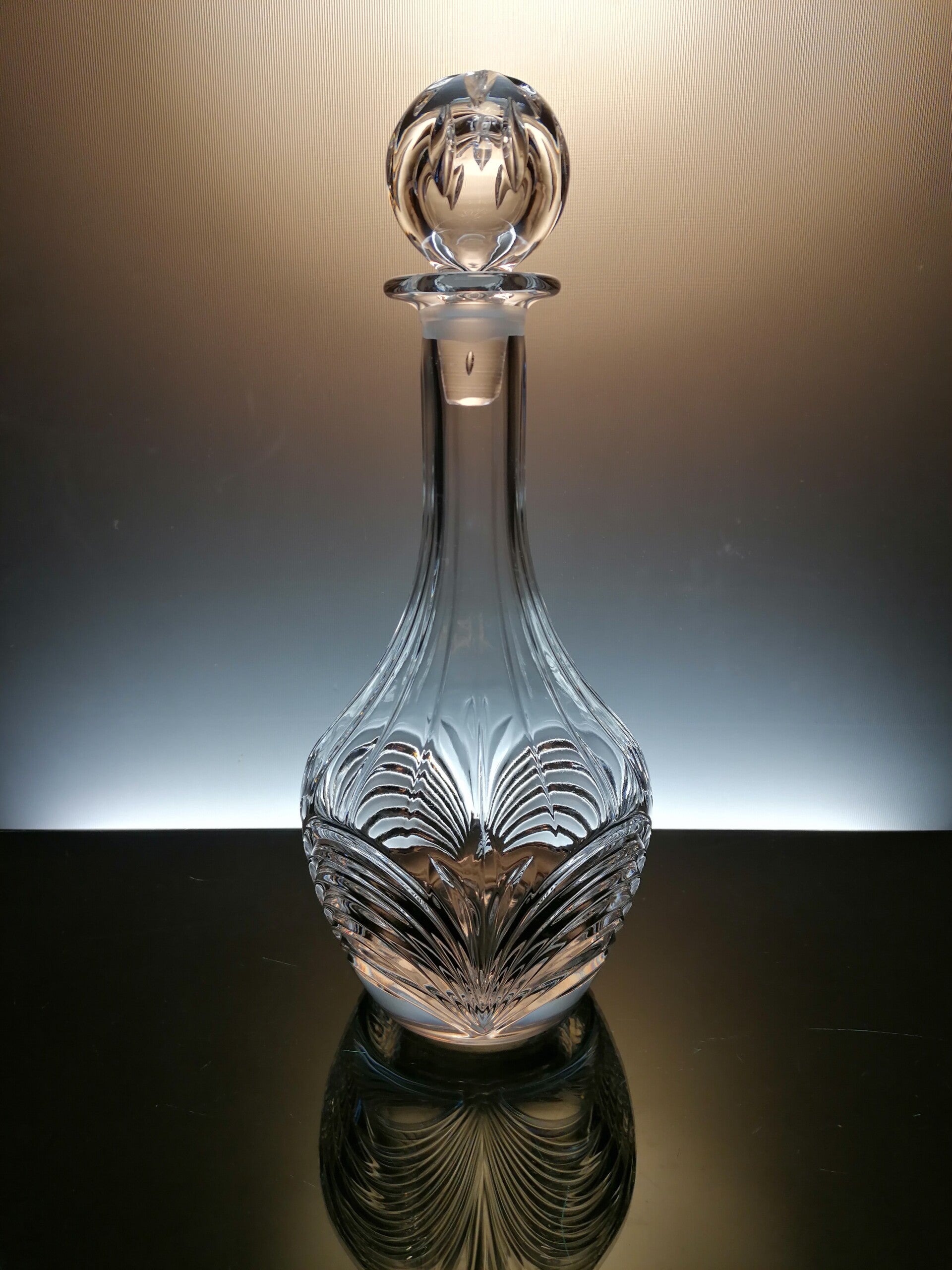 The decanter is beautifully decorated with sharpened wave pattern. The cap is also subtly decorated.