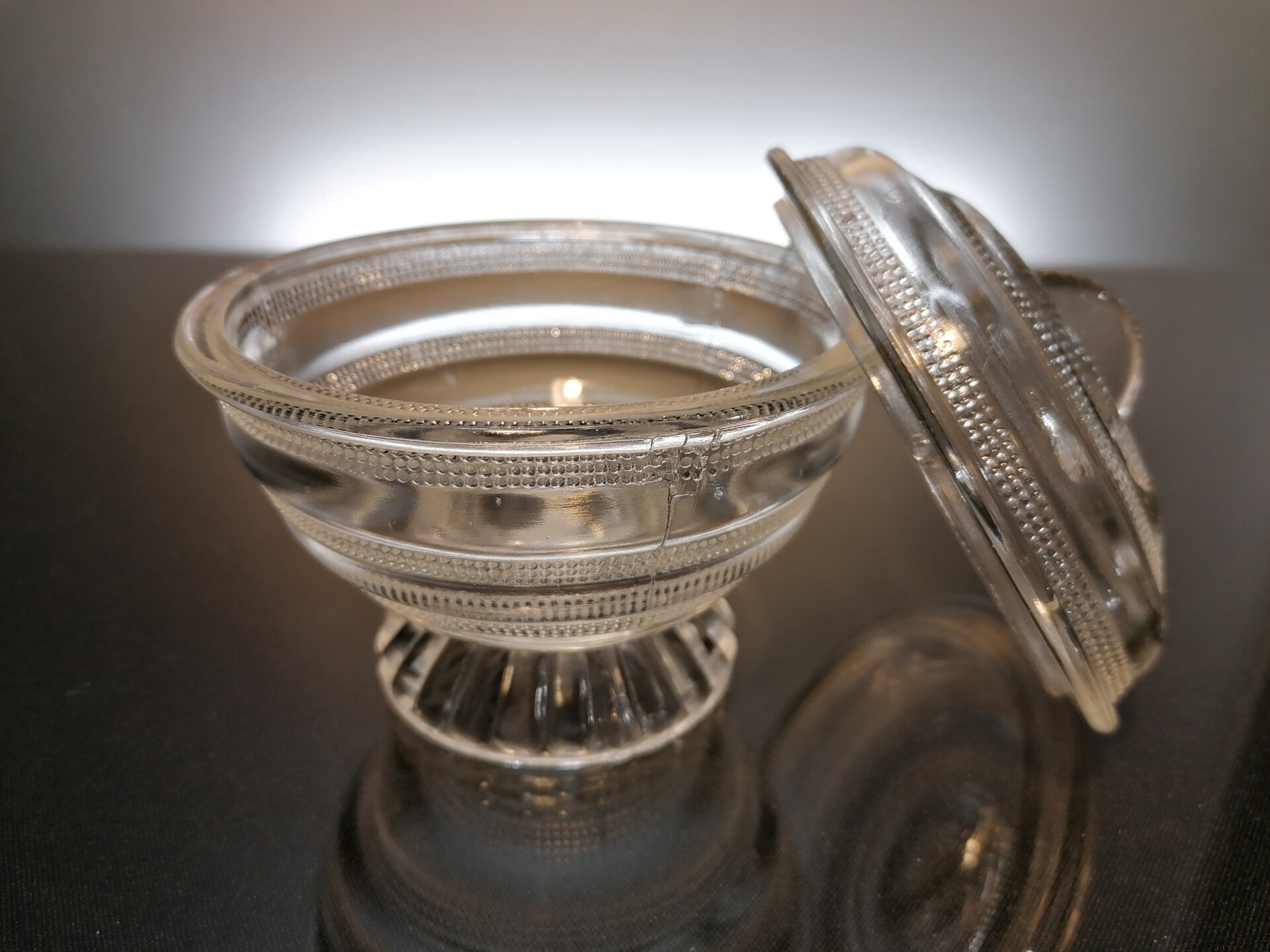 Art deco glass candy bowl with lid