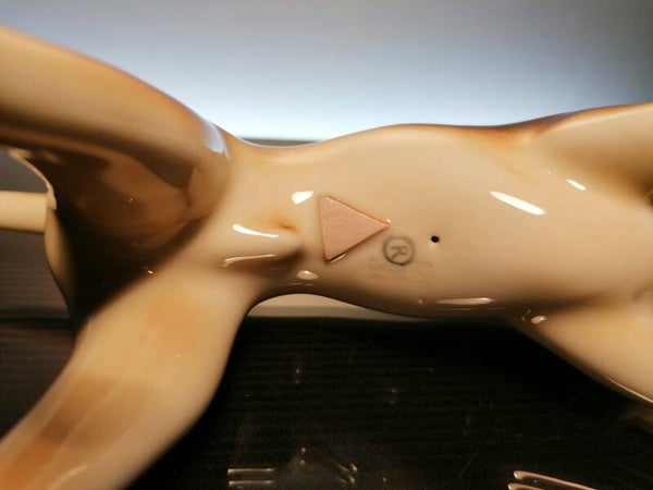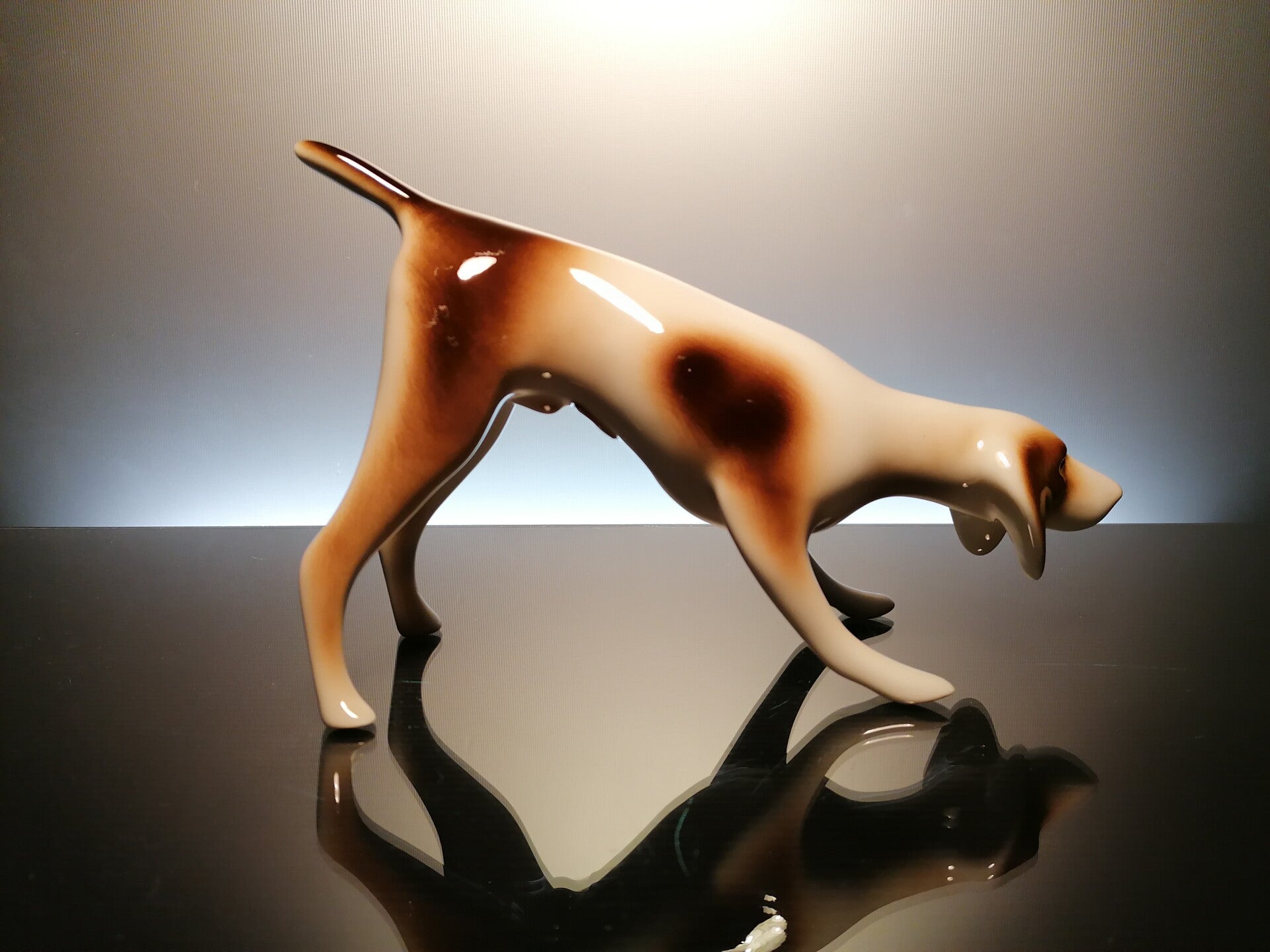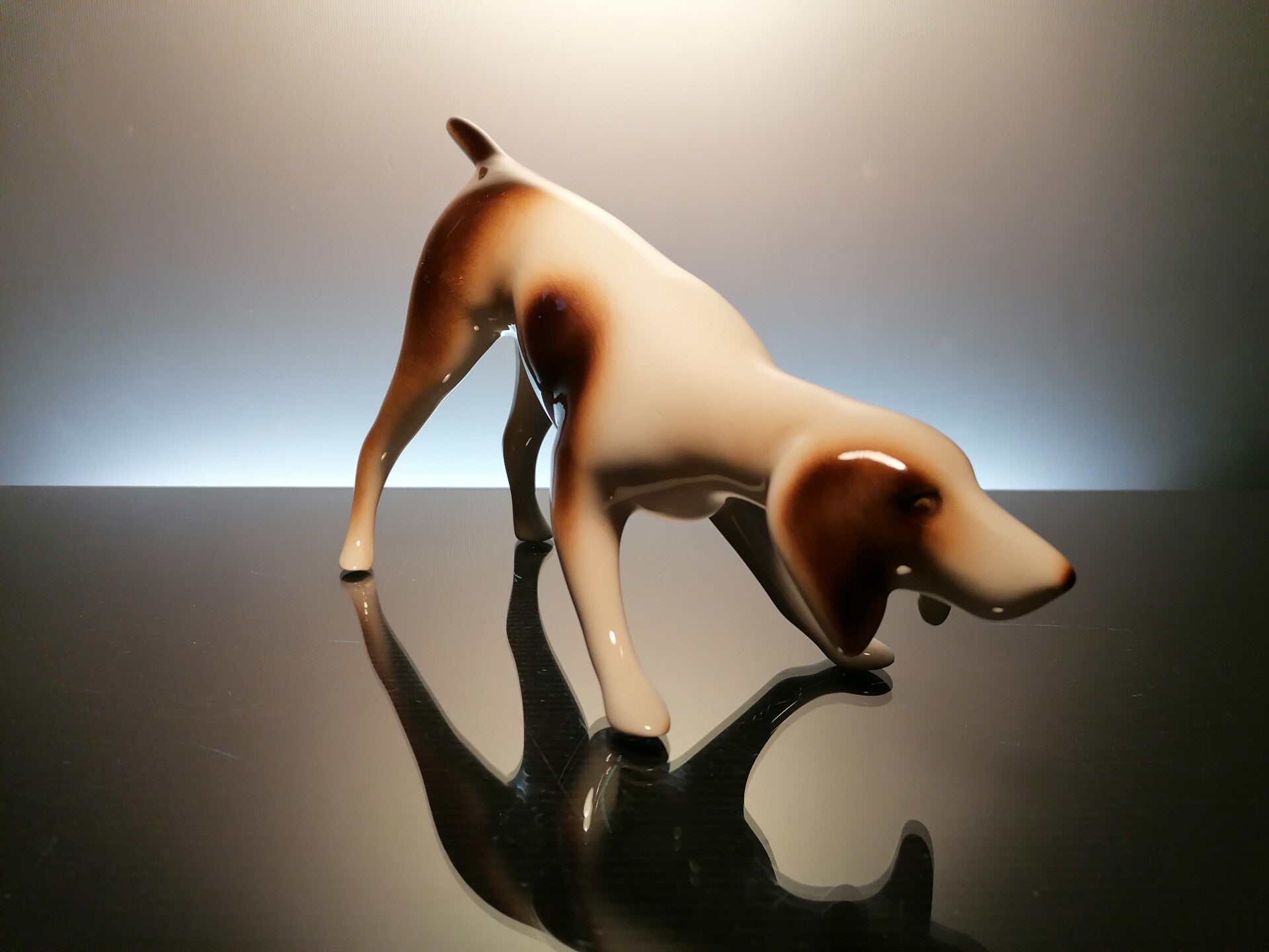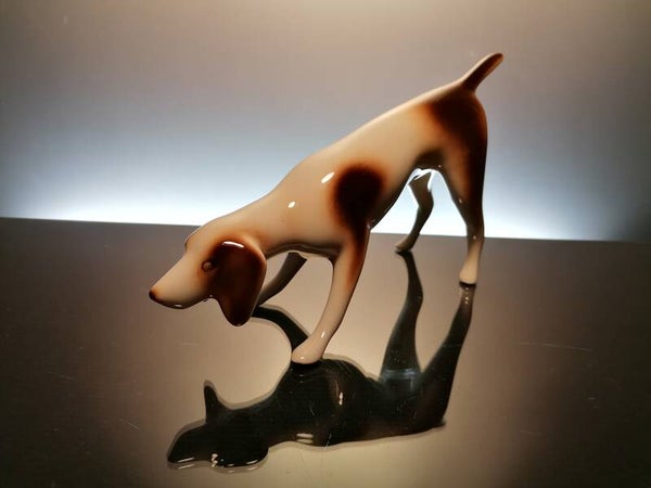 Very beautiful porcelain hunting dog, finished with colored glaze.