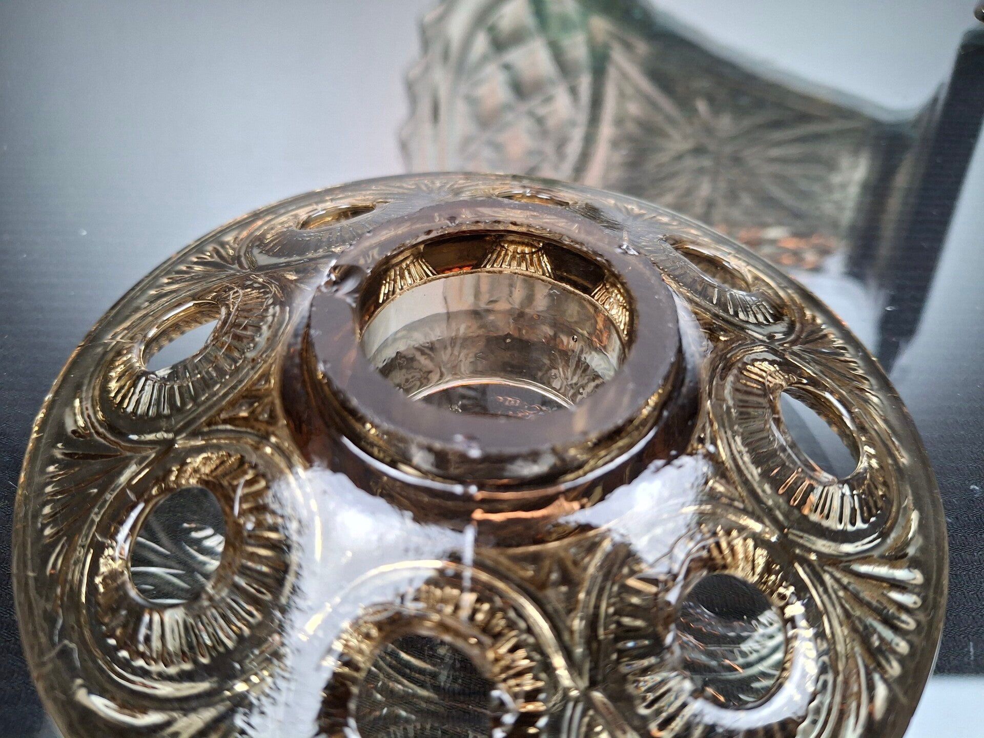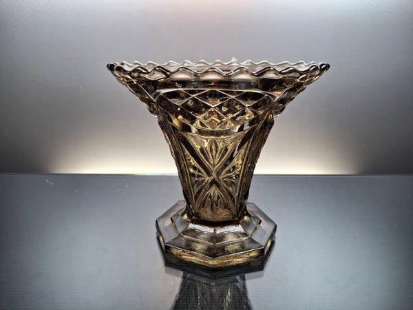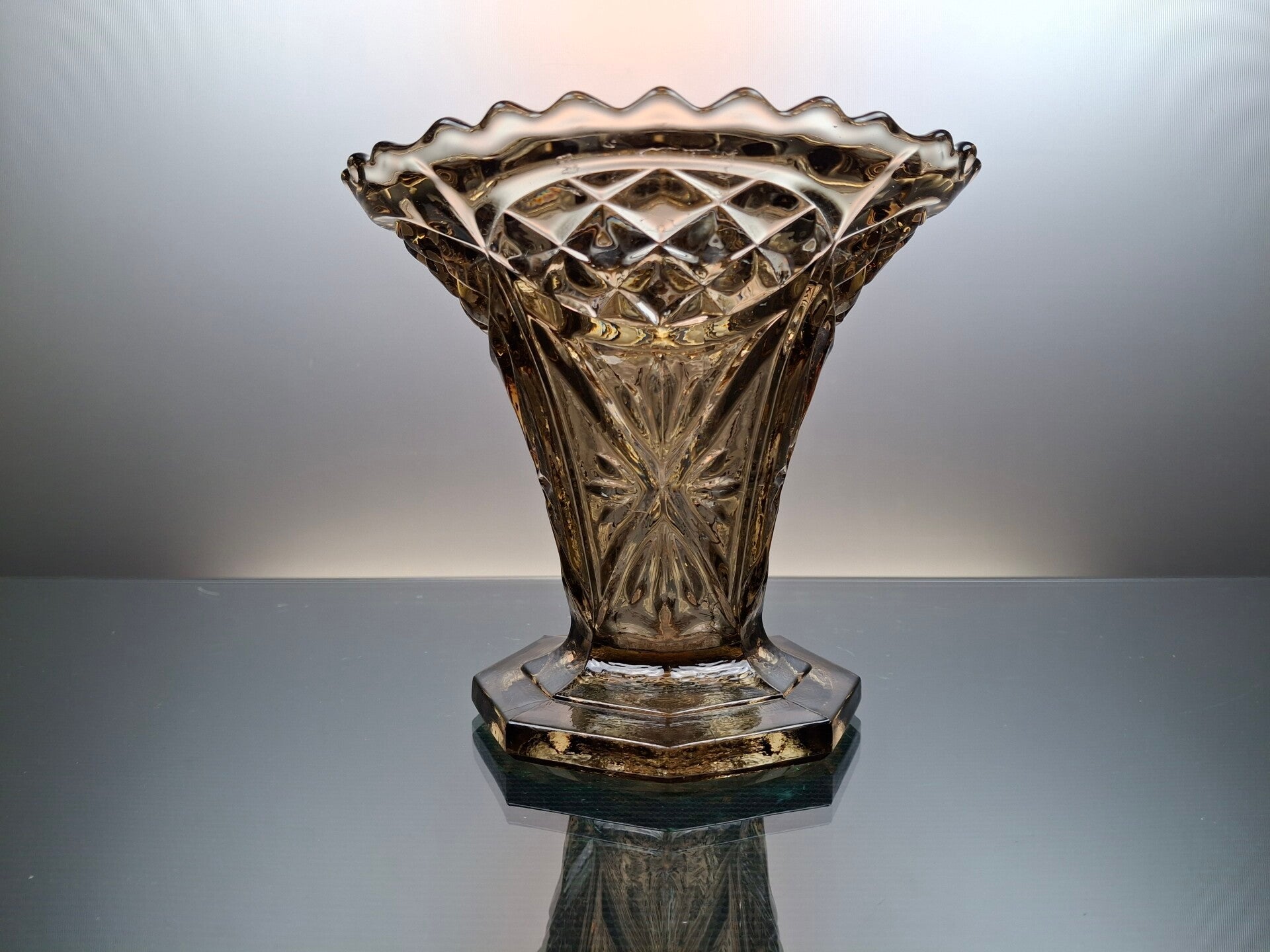 Very beautiful Fumé colored art deco vase, made at the beginning of the 20th century in Belgium. The vase is made of cast and pressed glass with cubistic designs.